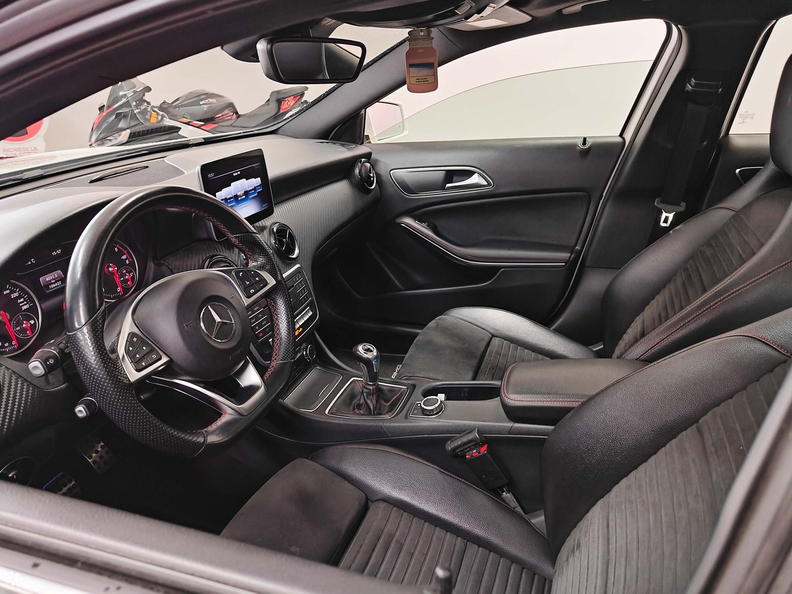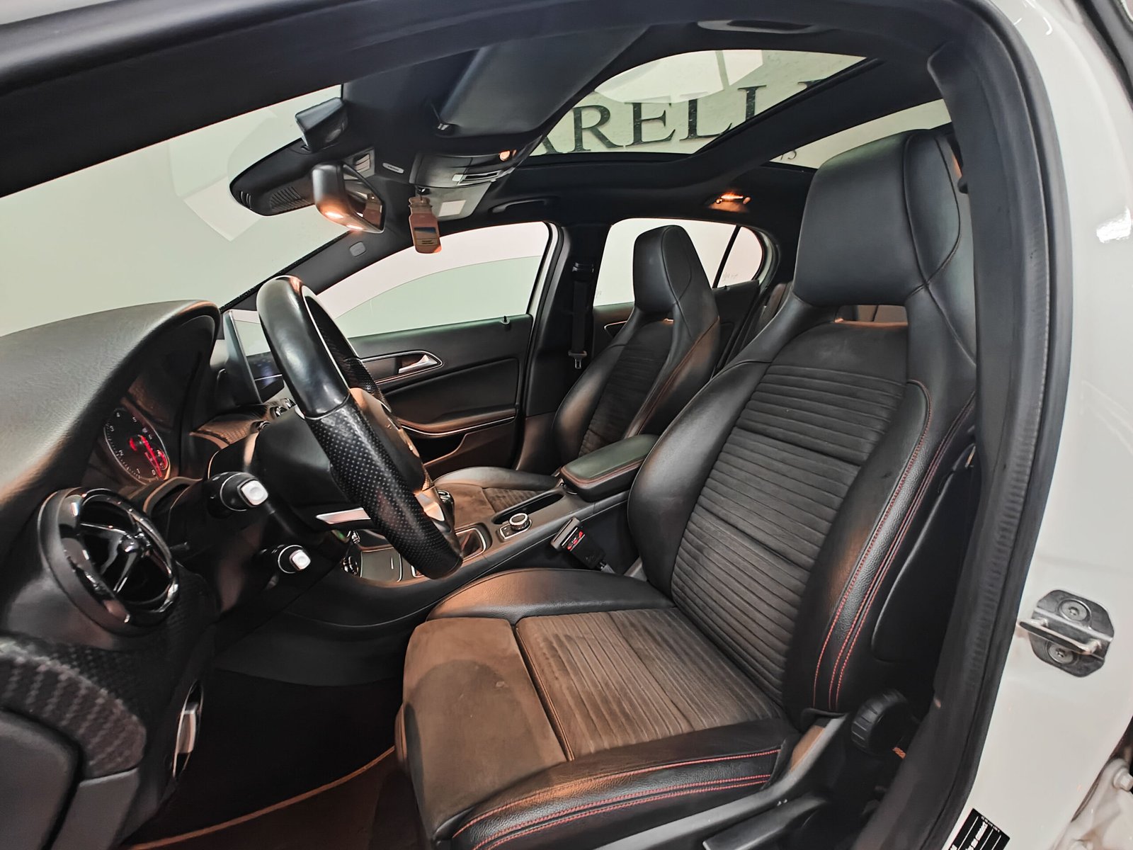 Sedili sportivi in pelle sintetica ARTICO e microfibra DINAMICA neri con cuciture a contrasto rosse